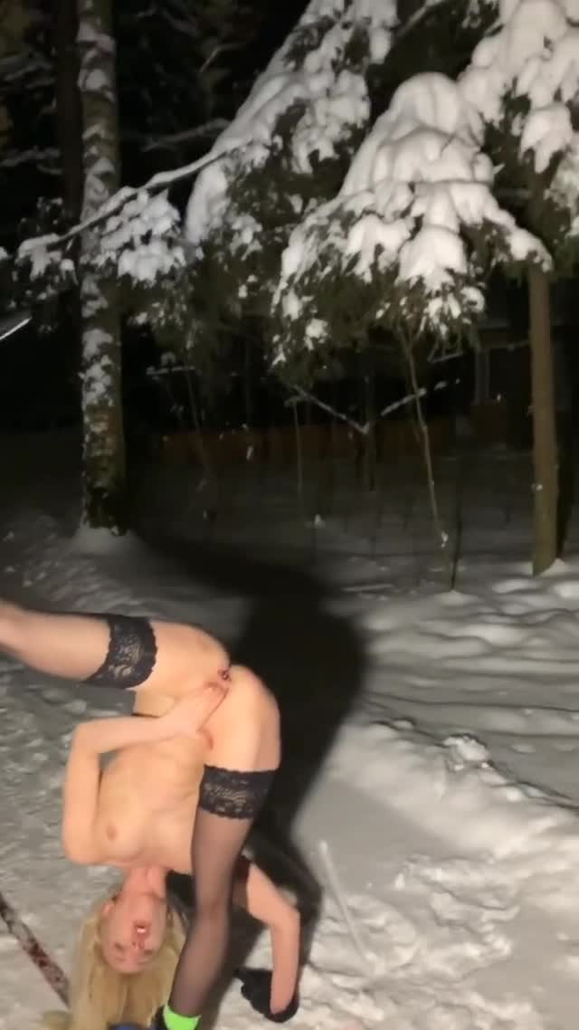 жесть... ночью в лесу, в одних чулках, на лыжах...