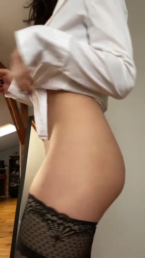 Девочка в чулочках покрутила своей пухлой попкой перед камерой и расстегнув рубашку показала свои сиськи и писю.