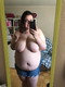 Брюнетка с большим животом и большими сиськами делает селфи.