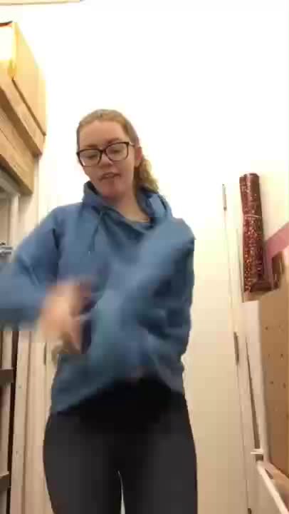 Только тихо! брюнетка в очках мастурбирует возле двери стоя