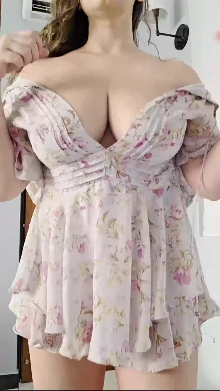 Скинув платьеце дева продемонстрировала аппетитную грудь