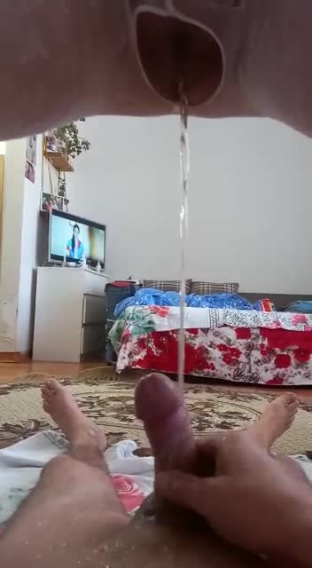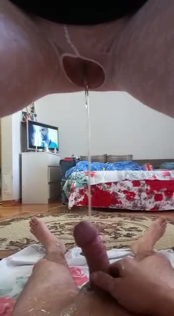 Он ждёт писс своей госпожи и подрачивает член в ожидании