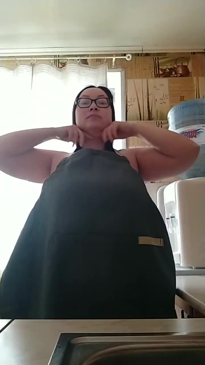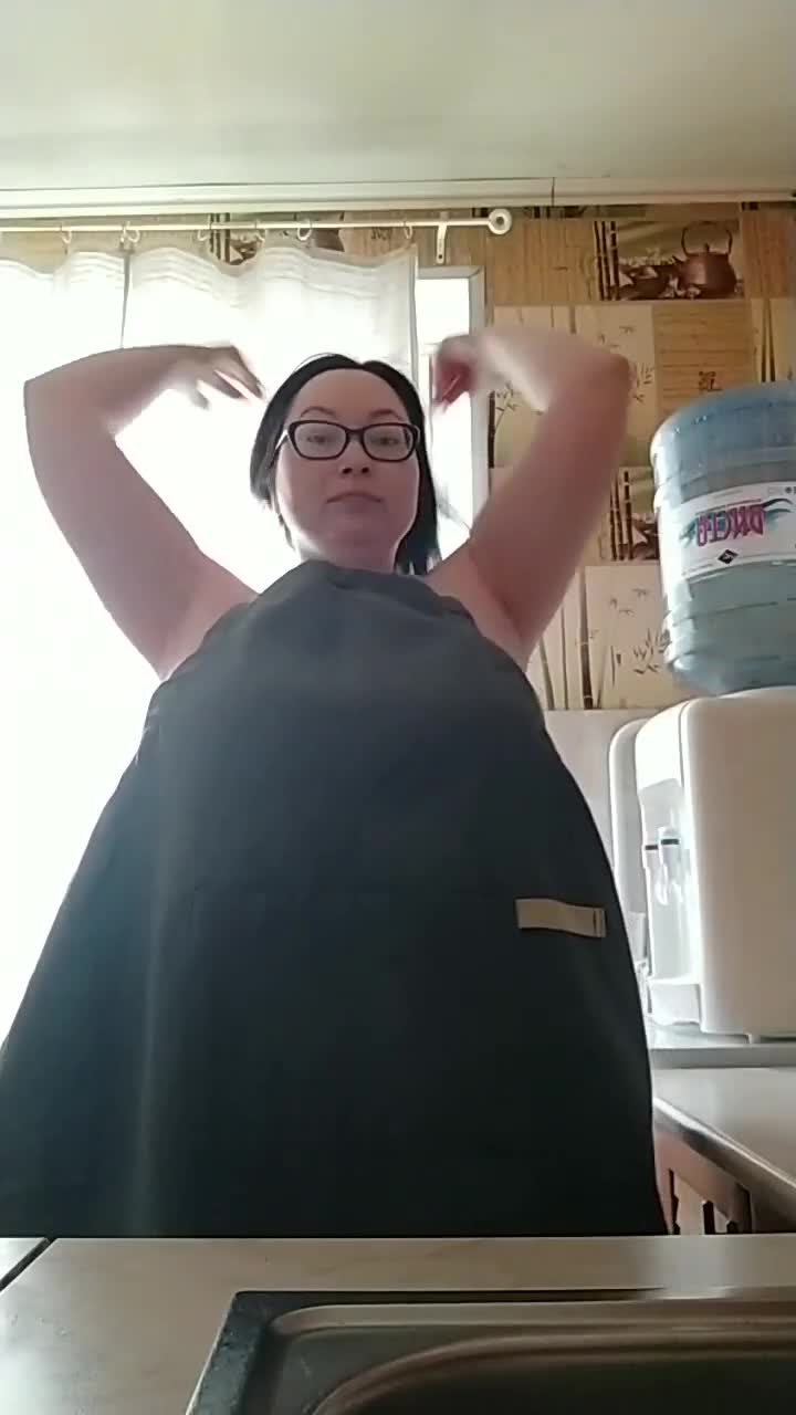 С большими сиська и, хорошей попой и в целом интересной фигурой женщина одевает фартук. На таких всегда стоит!