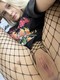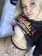 Милы сисечки и привлекательна вульвочка у крашеной девушки в сетчатых колготках!