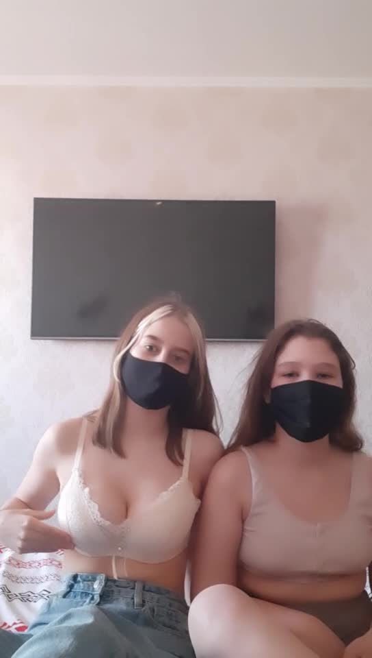 Две подружки разделись на камеру и ласкают свои влажные киски