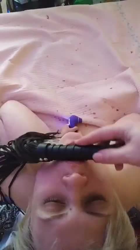 Мужик шлёпает плёткой по заднице подружку и даёт ей в рот