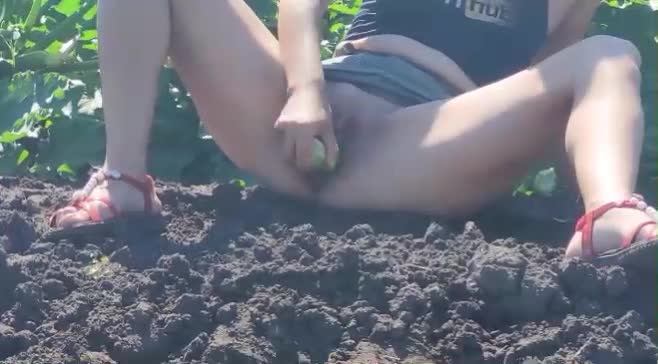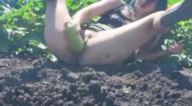Кристина из Екатеринбурга набрела на поле с кабачками и решила их попробовать своей ненасытной дырочкой.