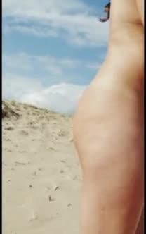 Девушка гуляет голой по песку