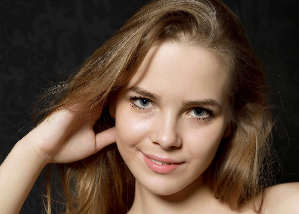 Акробатка развлеклась в тменой комнате, показав свои совершенные места и хорошенькое личико