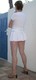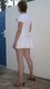дамочка во внутреннем дворе своего дома позирует с бокалом вина задирая своё белое платье показывая себя спереди и сзади.