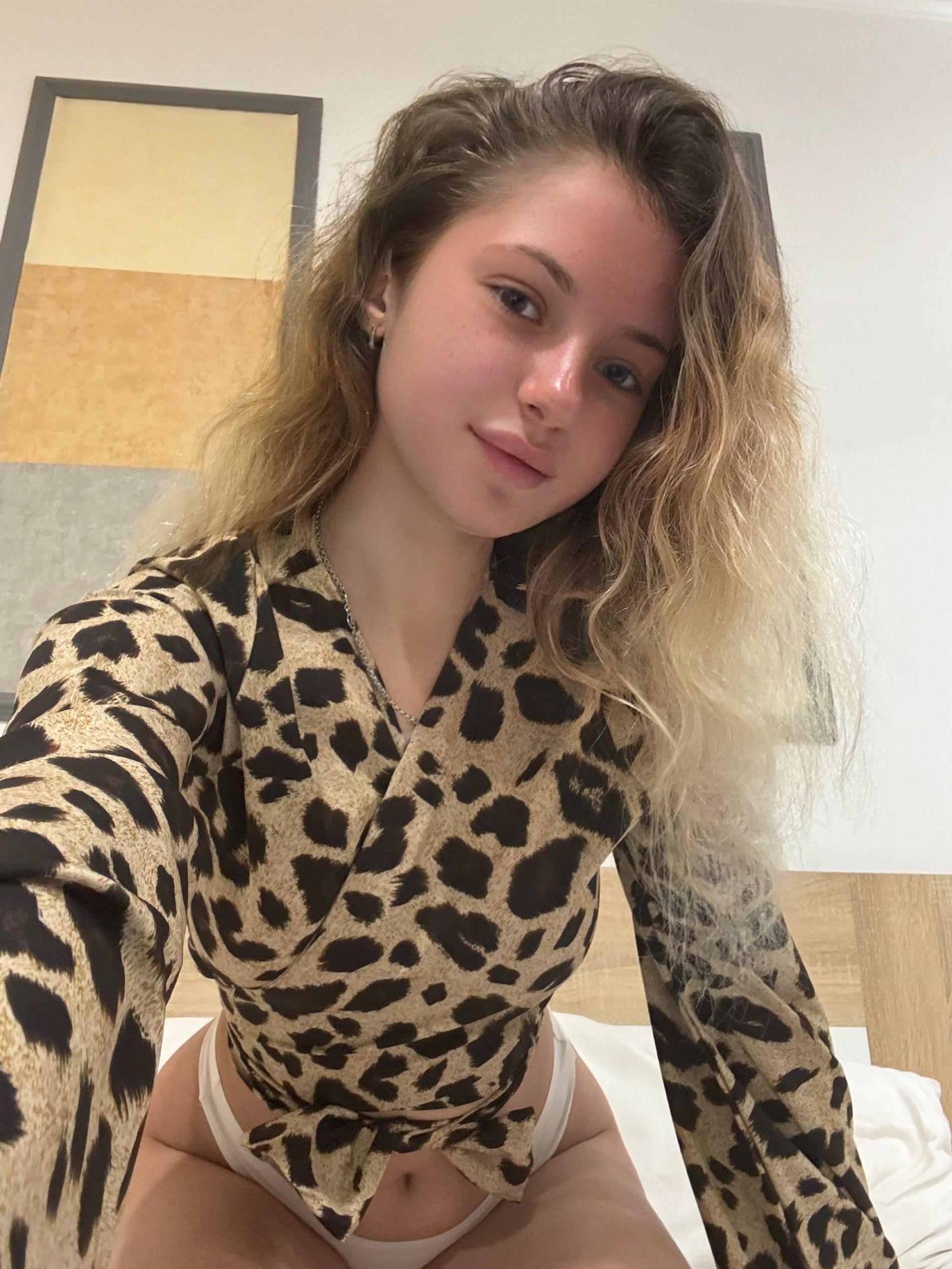 Скромная молодая девочка пока только топлесс