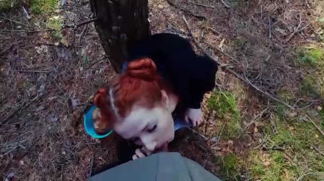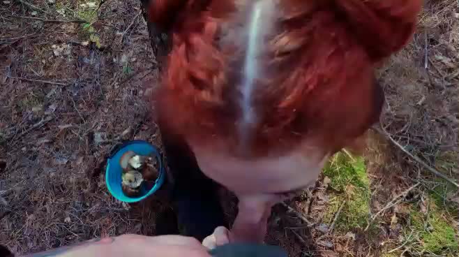 Девушка собирала в лесу грибы и встретилась с лесником. Пришлось ему отсосать за грибочки.