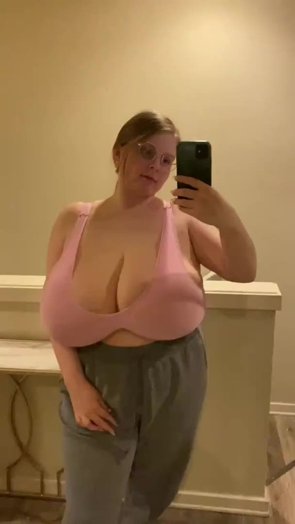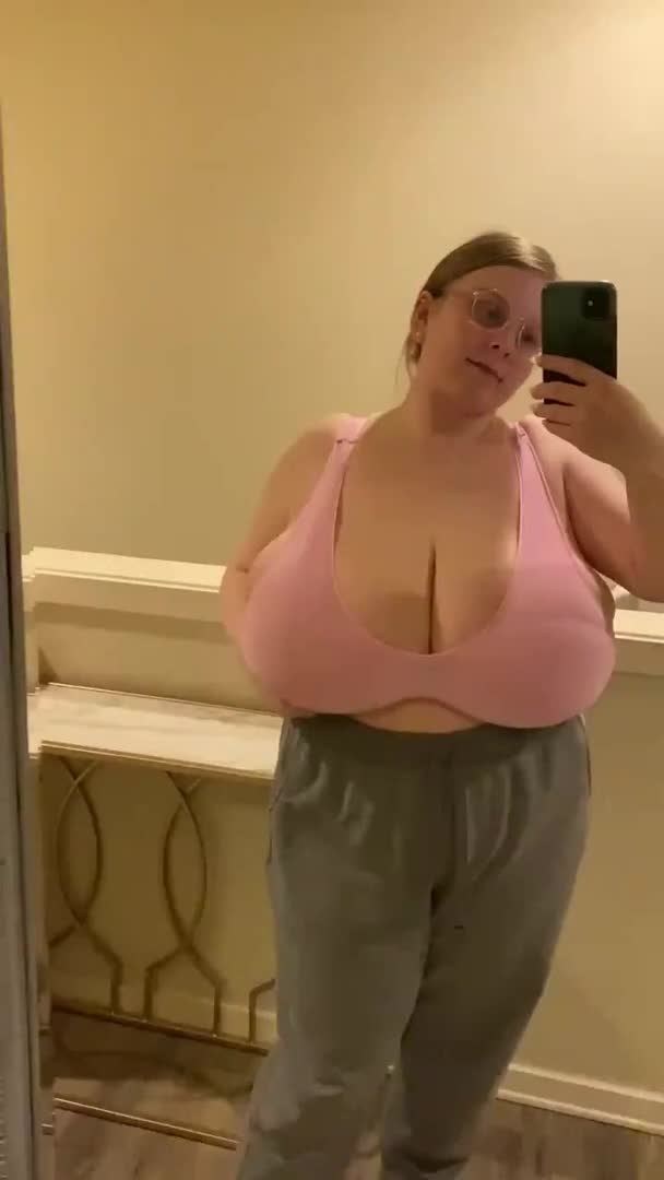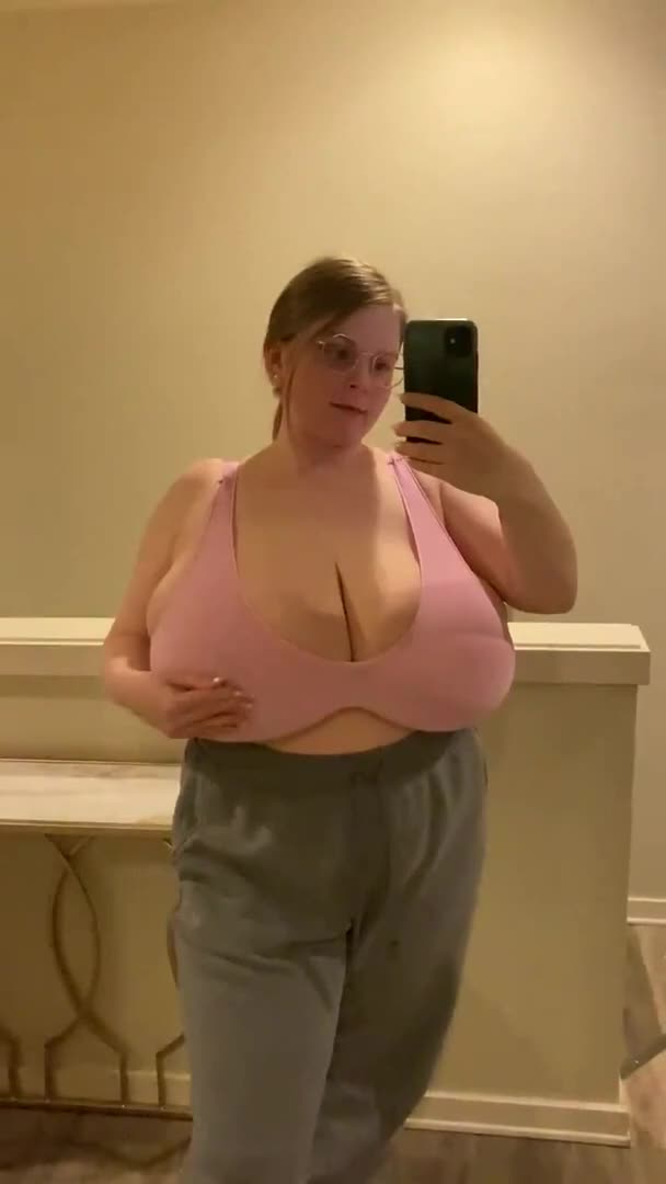 Молодая потрясла сиськами, стоя перед зеркалом.