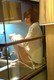 голая девушка скромно позирует в какой-то отделенной кухне