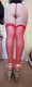 Женщина вся в красном демонстрирует свой задний проход и стройные ноги