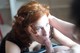 Рыжая наслаждается тем, что делает своему парню минет и глотает весь его хуй.