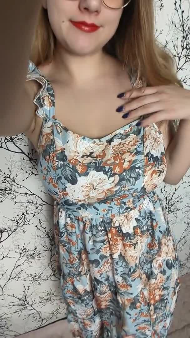 Сочная девочка в сарафане оголила титьки и показала писечку
