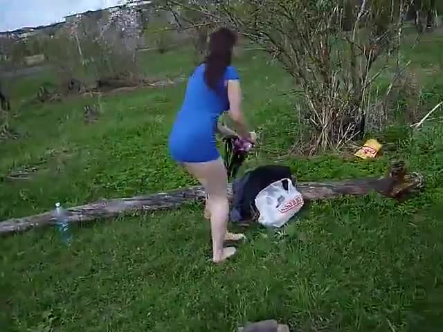 Девушка пошла с парнем на речку и он уговорил ее на первый в ее жизни стриптиз