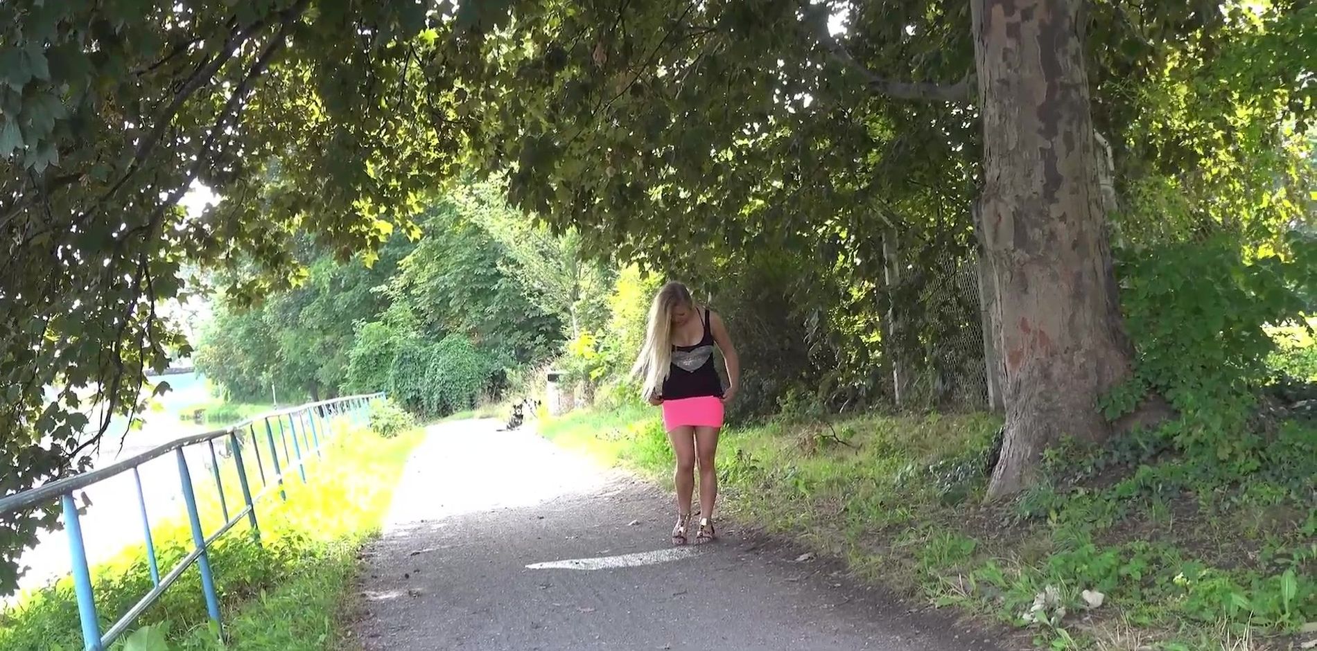 Милая и фигуристая девушка в розовой мини-юбке, с весьма сексуально выглядящей выбритой киской долго терпела и сделала в парке на дорожку потрясающе мощный писс , длительный и очень эротичный. Красивое, вызывающее, притягивающее глаз зрелище. Всем - приятного просмотра!