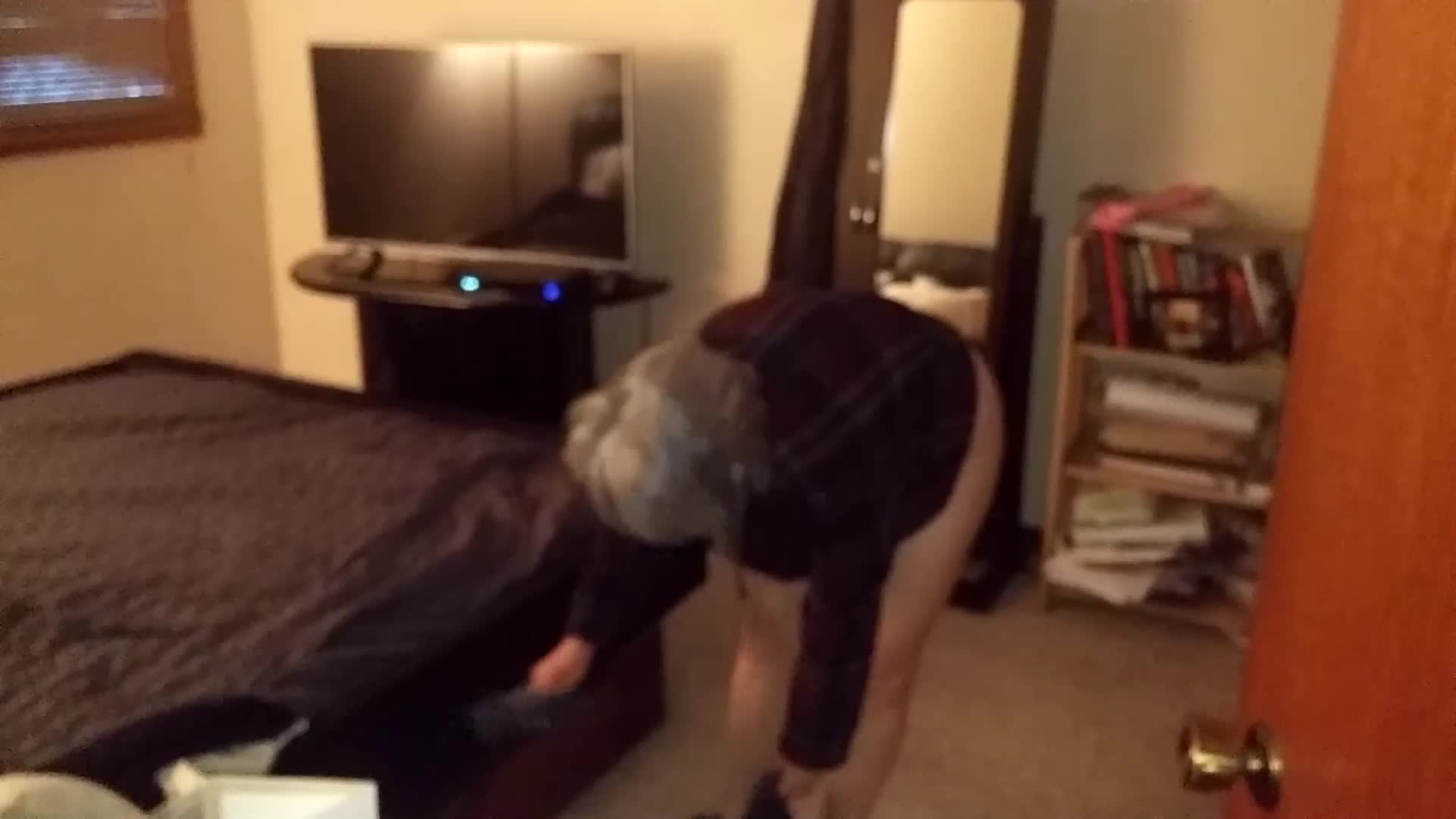Пожилая женщина суетится вокруг дома и собирается принять ванну
