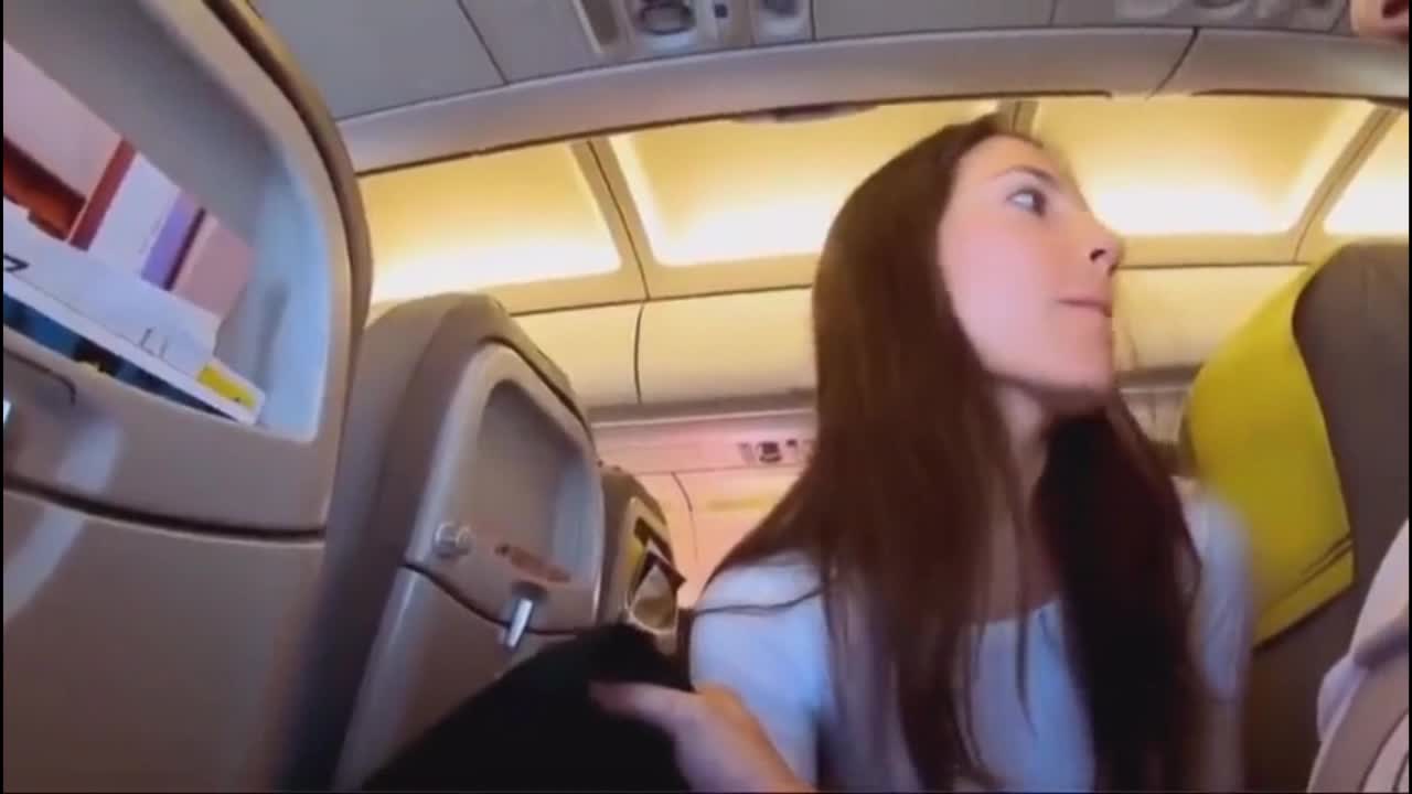 девушка сделала минет своему другу и пьет его сперму в самолете.