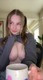 Грудка уже как у молодой мамы большая, мягкая и чуть-чуть провисшая.Вид девичий. Ну как она играет с присоской на краю ванной.