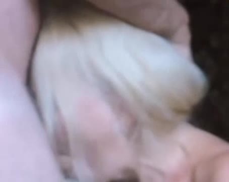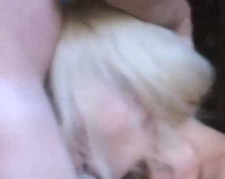 Мужчина трахает женщину в рот, двигая бедрами и поддерживает ее за затылок