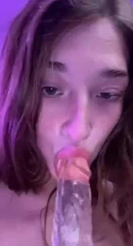 Девушка крупной съёмкой суёт в себя прозрачный силиконовый член