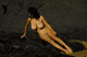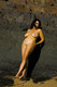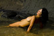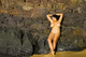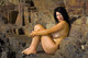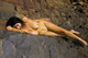 Зрелая брюнетка с черными как смоль волосами показывает свое стройное женское тело среди скал