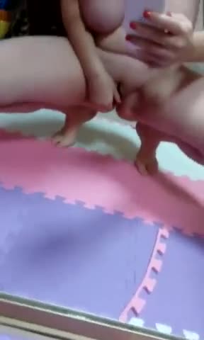 Снимает сама себя голенькую в детской комнате, показывая свои большие бидоны