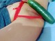 Девушка трахнула себя зеленым огурчиком