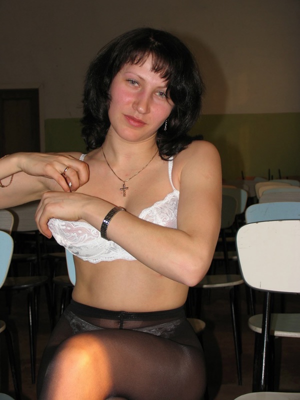 Темноволосая учительница разделась в школьном зале