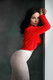 Прелестная брюнетка со всеми необходимыми выпуклостями позирует в чулочках и колготках.