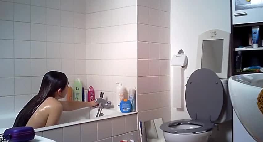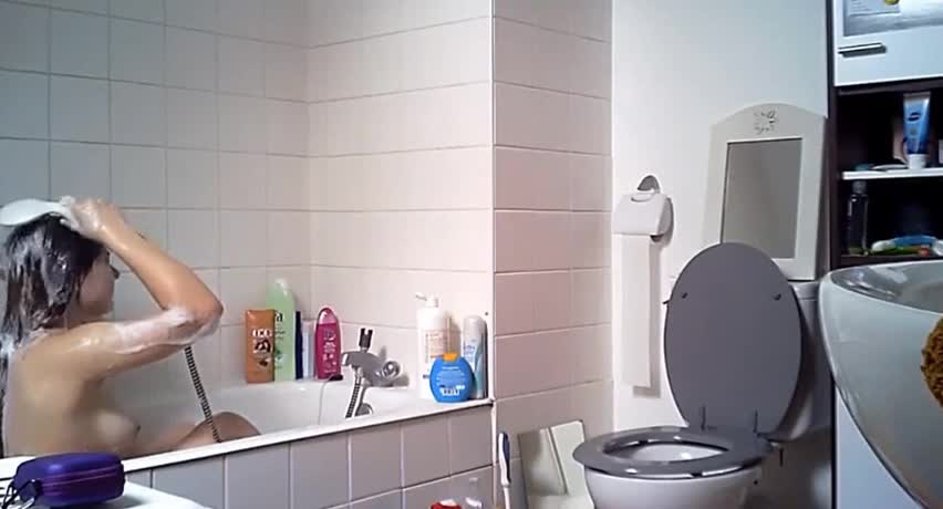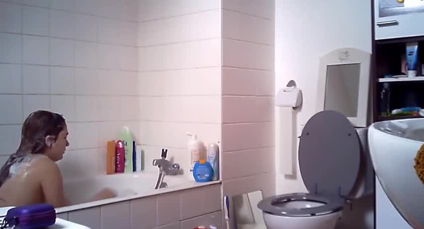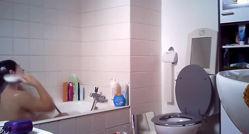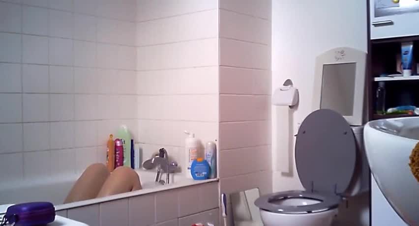 Фигуристая молодуха с манящим кустиком на киске принимает ванную в пене. Отличная фигурка, а если бы камера была еще чуток левее повернута, то вообще бы весь процесс попал отлично в кадр.