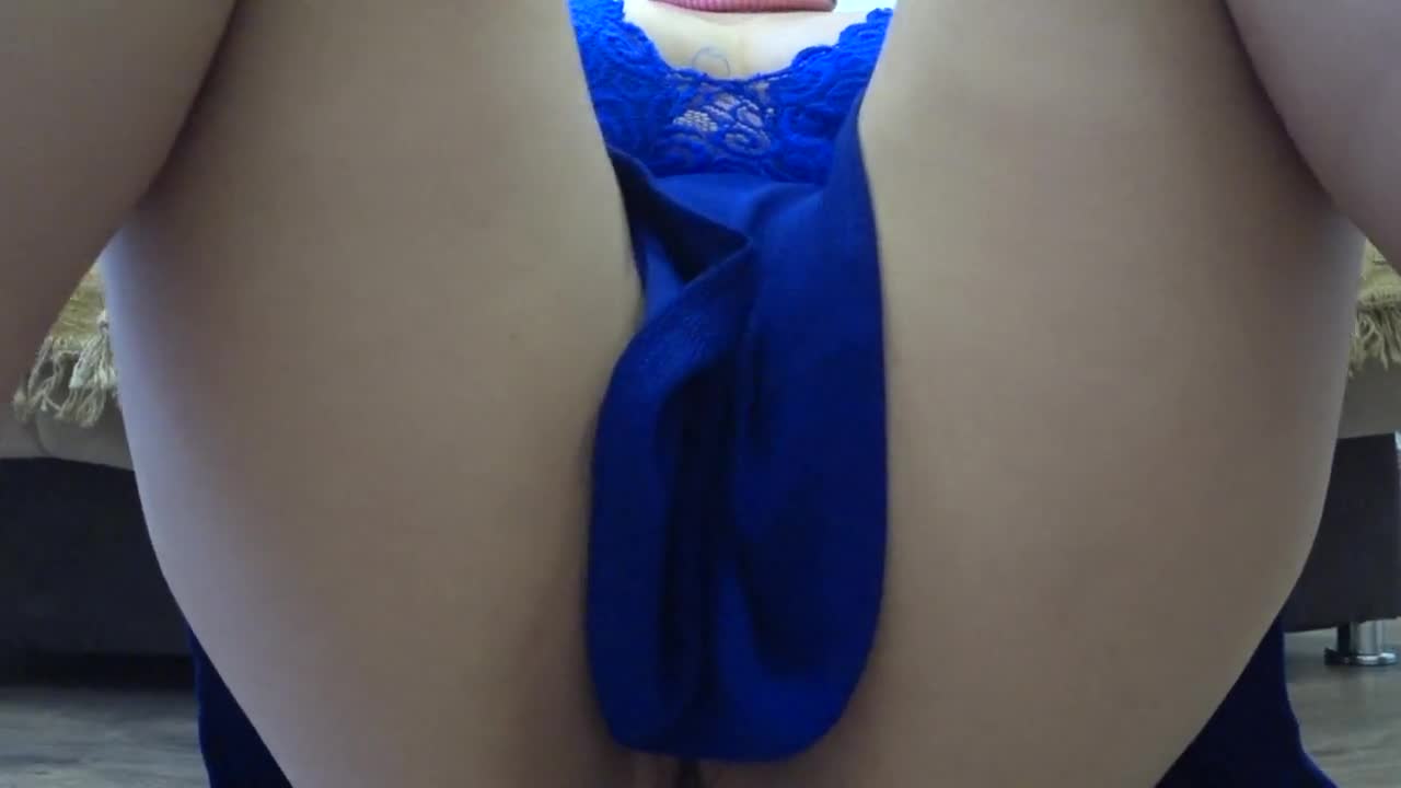 В синем белье играет с киской