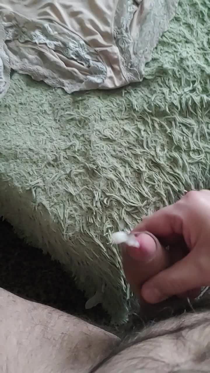 Когда моя женщина уезжает по работе надолго, я онанирую на ее трусики.