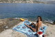 Парочка отдыхает нагишом , на побережье Греции , много солнца и голых тел