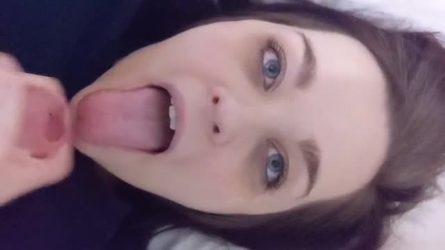 Кончил на язычок, а она проглотила.