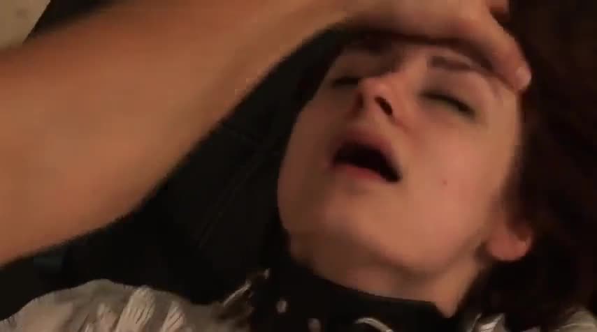 Сучка в ошейнике, без нижнего белья. Ей дают пощечины, плюют в лицо и трахают только в очко