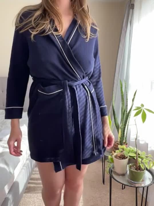 Сняла халат в своей спальне, чтобы показать свои сиськи.