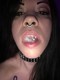 Ядрён-чёрный батон у неё во рту.А яркости, конечно, ей добавляет пирсинг в носу и чёрная помада.