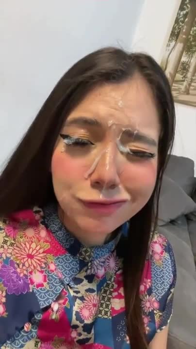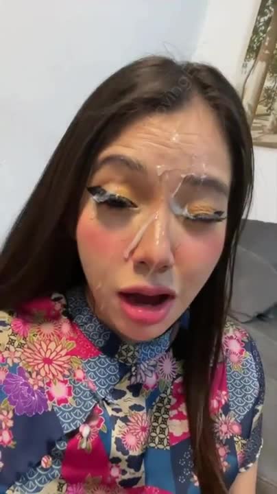 Смазливая девушка получает желанную сперму на своё лицо.