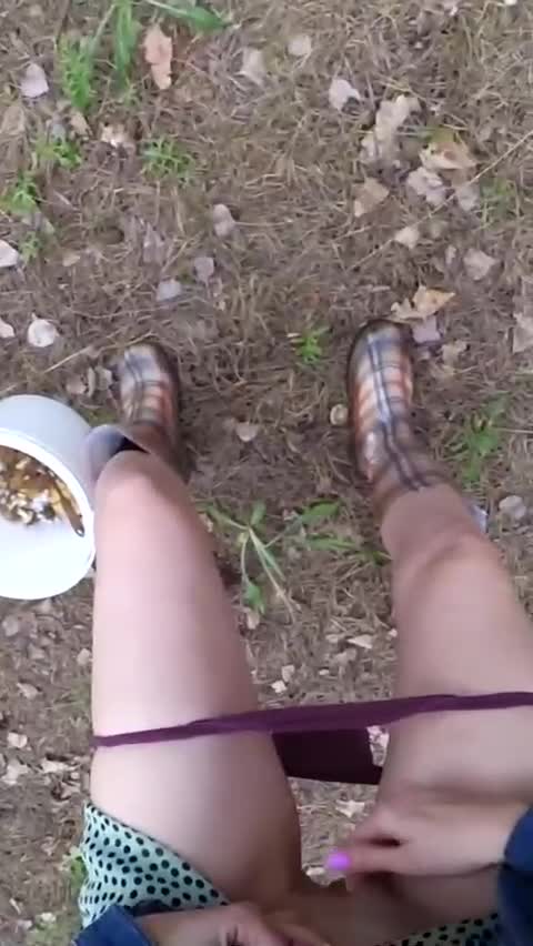 Девушка пошла собирать грибы в лес и там ей сильно приспичило.