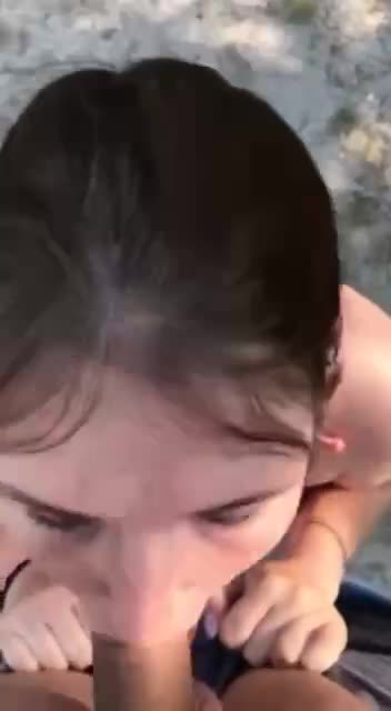 Без лишних разговоров девочка достала из штанов и взяла в ротик член с окончанием на пляже