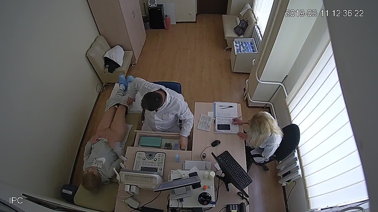 На обследовании врача гинеколога две пациентки-63 и 25 лет снимают трусы не подозревая что за ними наблюдает скрытая камера.