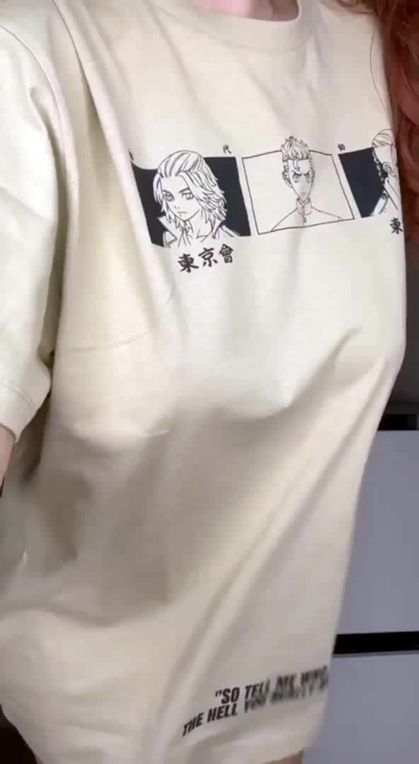 Показала грудь, подняв край футболки кверху.