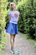 Девочка с клубничкой на футболке ненавязчиво показывает свою кормилицу под юбкой