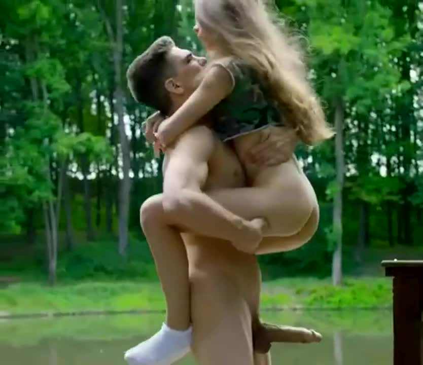 Паренёк поднял и насадил девицу на свой член.