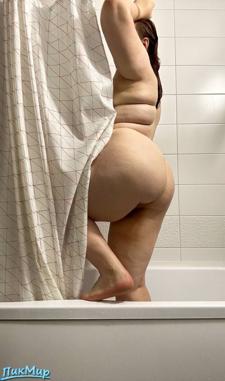 Пышная дама принимает душ