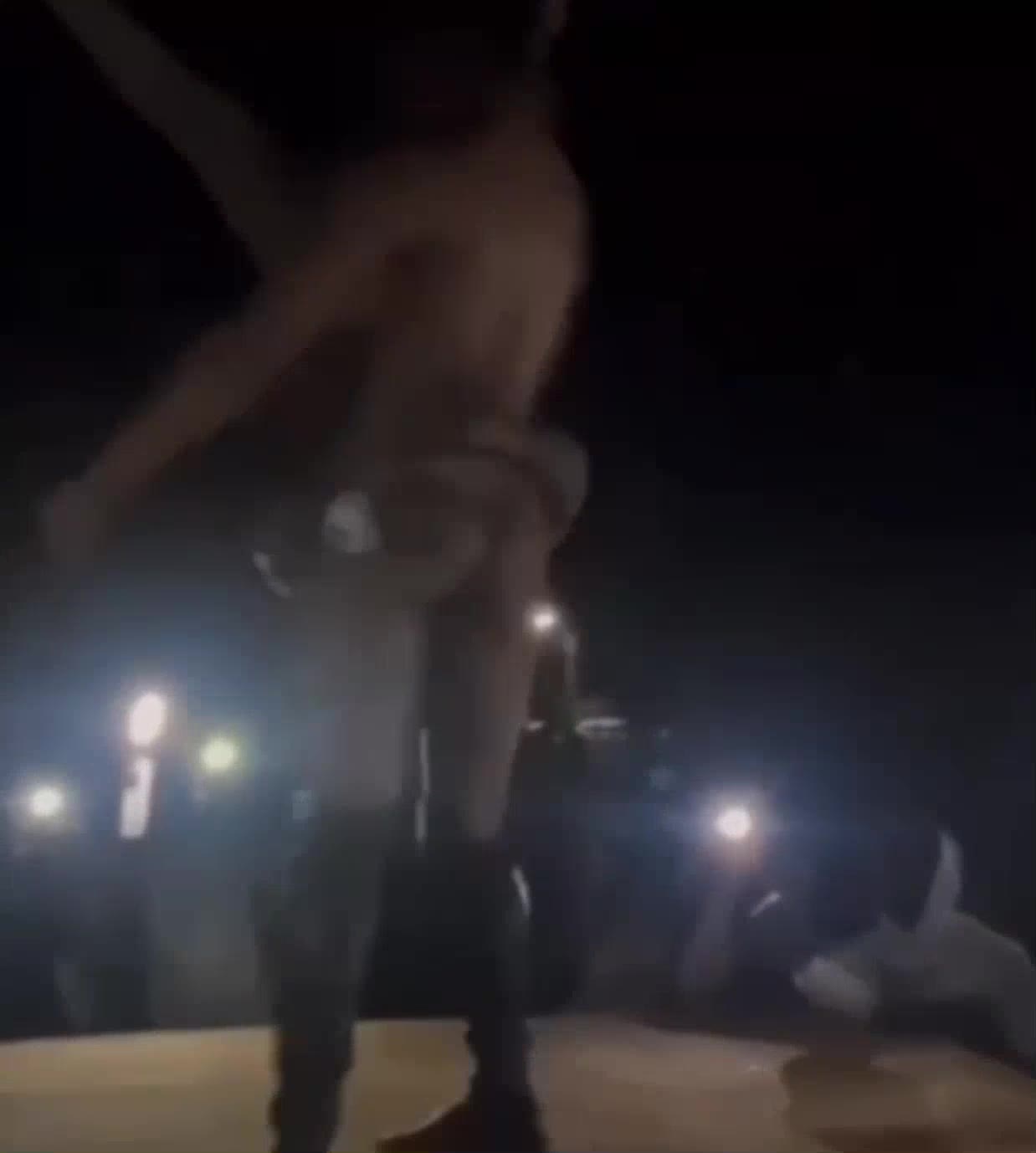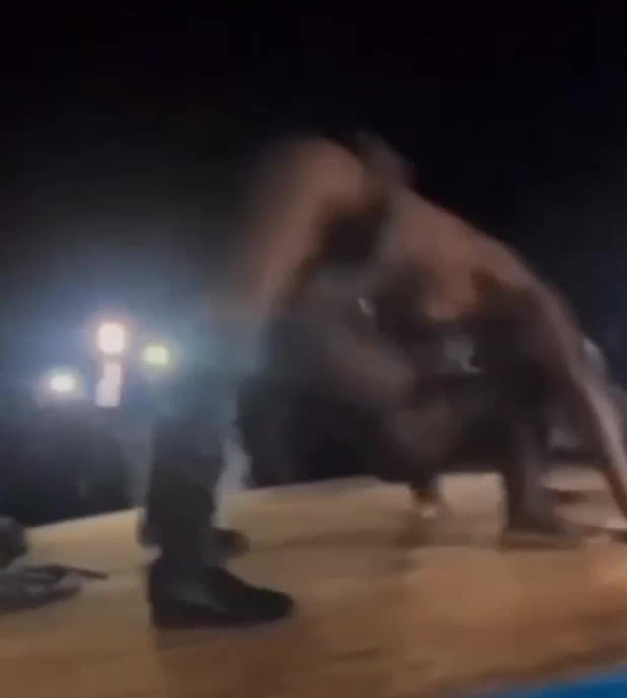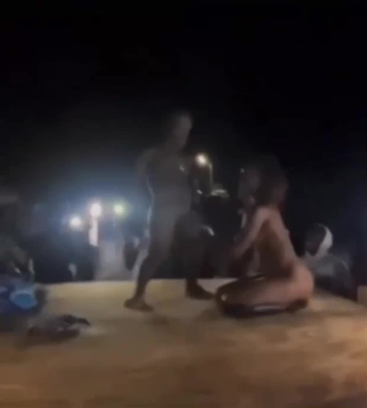 Девушка пританцовывая старается не вынимать изо рта большой чёрный член мелкого негра.